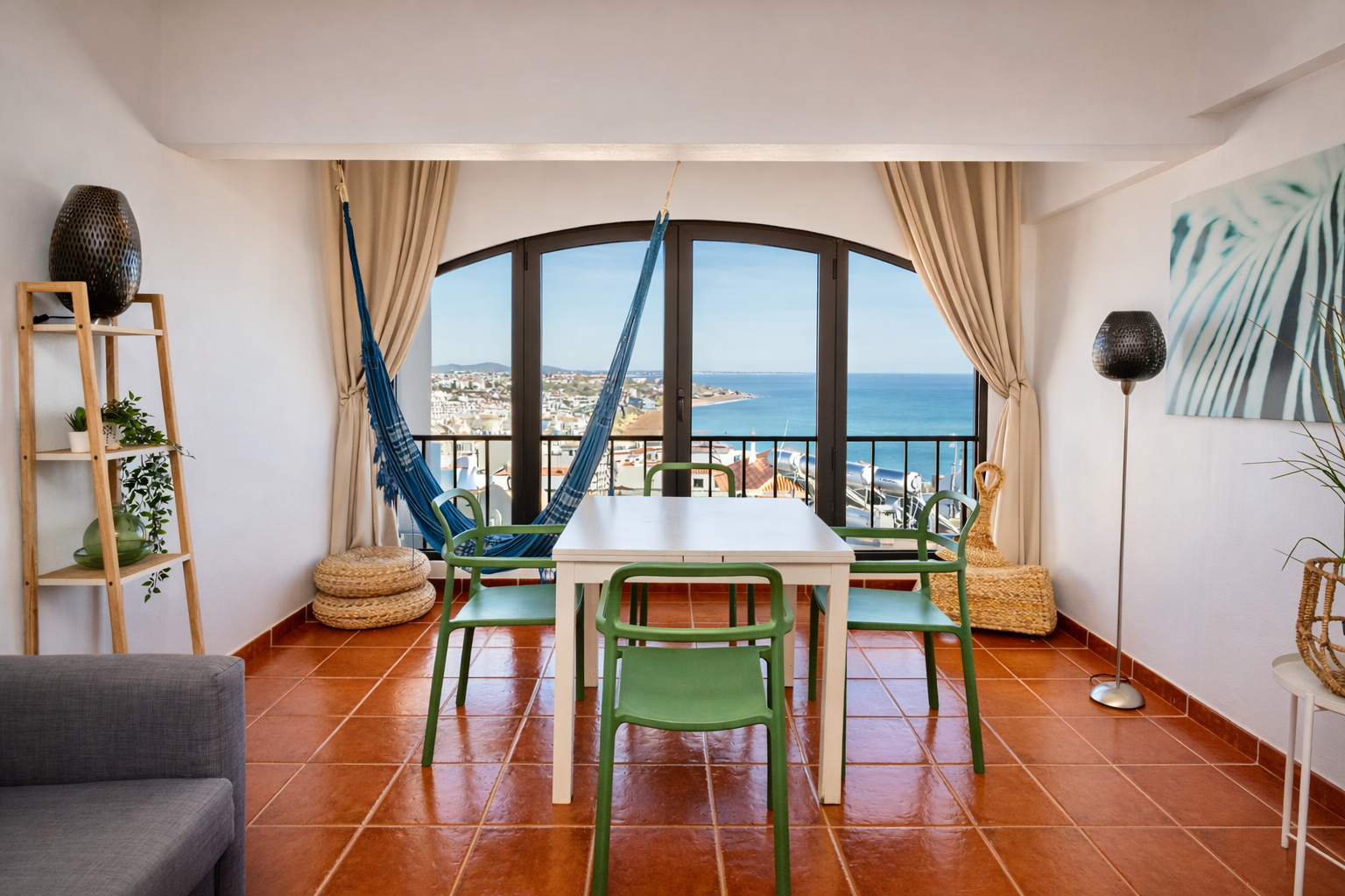 Cet appartement offre une vue imprenable sur l’océan grâce à sa grande baie vitrée dans le salon, idéale pour admirer les vagues. Il dispose de deux chambres, une cuisine bien équipée et une salle de douche moderne, le rendant parfait pour deux couples ou une petite famille en quête de confort et de sérénité. De plus, sa situation centrale permet un accès facile à pied aux restaurants, boutiques et attractions touristiques de la région.