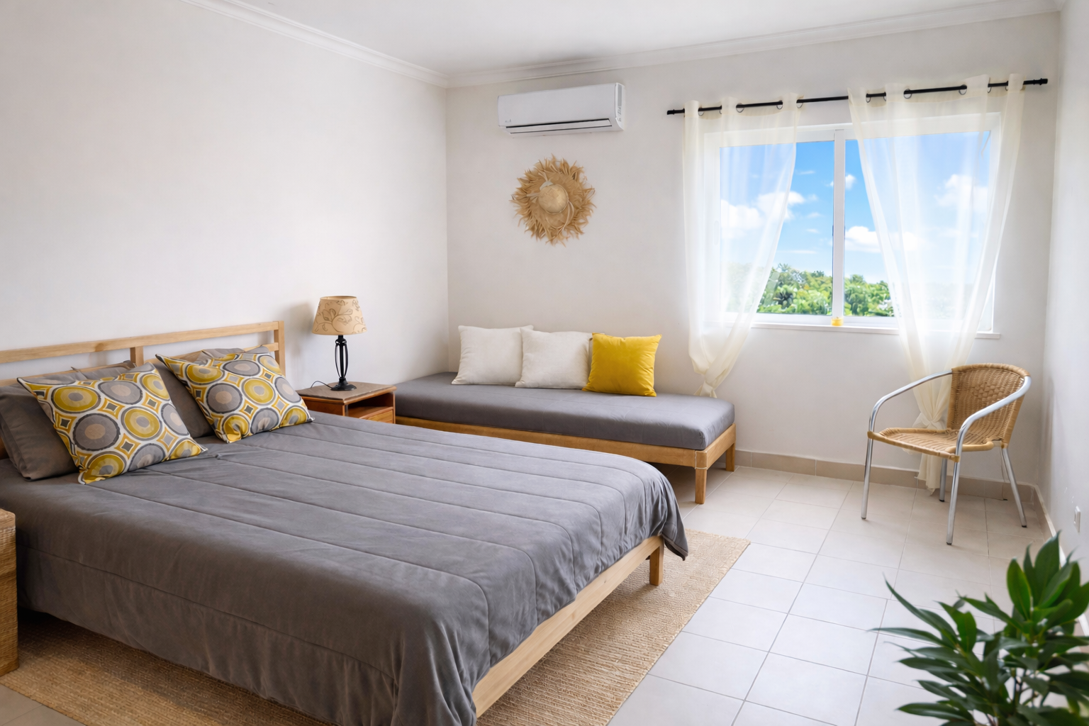 Grand appartement de 110 M2 , au 1er étage dans résidence fermée avec 2 grandes chambres, 2 SDB , Cuisine équipée