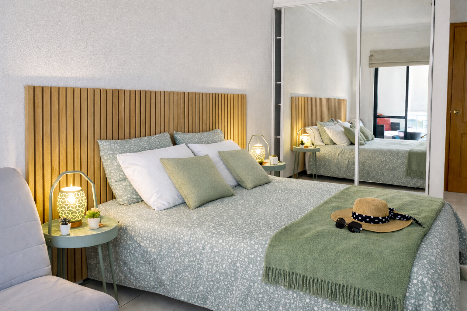 Avec 1 chambre équipée d’un lit double, armoire et accès sur la loggia.