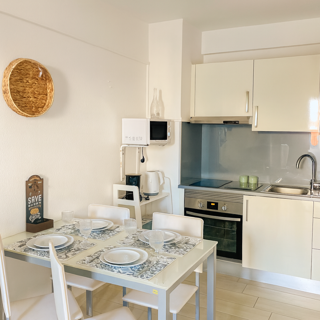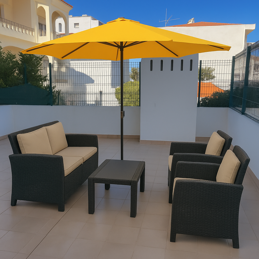 Appartement de 60 m² situé au rez-de-chaussée d’un immeuble résidentiel où se côtoient habitants locaux et voyageurs. Il se compose d’une chambre confortable, d’une salle de bain moderne avec douche, ainsi que d’une pièce à vivre lumineuse ouvrant sur une très grande terrasse aménagée, idéale pour profiter du climat de l’Algarve.