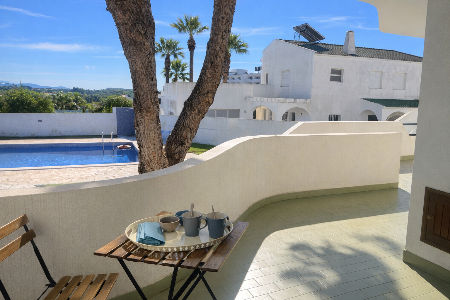 La résidence dispose de deux piscines, dont l’une se trouve juste en face de l’appartement. La plage de Santa Eulália est accessible en 10 minutes à pied (ou 2 minutes en voiture). Le supermarché Aldi se trouve à seulement 2 minutes à pied, et de nombreux restaurants sont accessibles en quelques minutes. La célèbre rue Oura est à environ 7 à 10 minutes de marche.